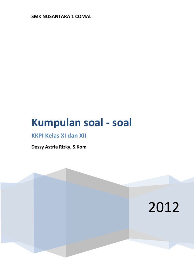Berikut ini adalah contoh soal uas kkpi smk kelas xii semester 2 yang bisa digunakan untuk melengkapi administarsi guru yang dapat di unduh secara gratis dengan menekan tombol download. Contoh Soal dan Kunci Jawaban UAS PKN Kelas 11 ini khusus untuk kamu yang sedang mencari bahan untuk ulangan sebelum UAS Semester 1 nanti datang Agar bisa dibaca secara offline atau ingin di cetak print Silahkan Download Contoh Soal dan Kunci Jawaban UAS PKN Kelas 11 XI Semester 1 Dengan cara klik link Download yang telah disediakan. Download Soal Kkpi Kelas X Beserta Jawabannya PDF 1000 MB - SamPDF SamPDF Soal TIK kelas XI SMA Jilid1 Soal ini di buat agar perserta didik lebih mudah untuk menjawab soal2 ulangan dan melatih diri untuk menjawab.